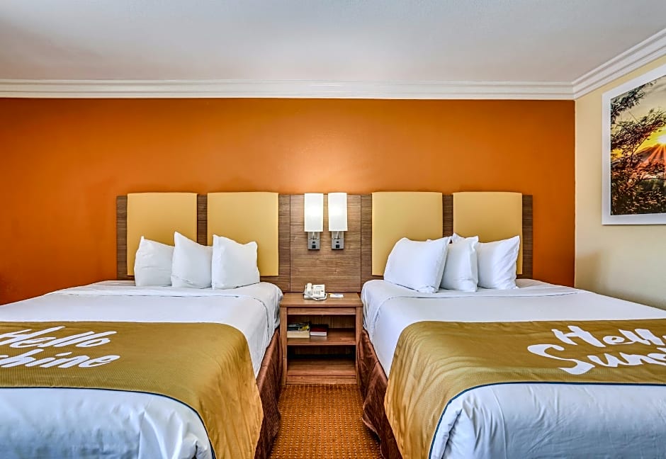 A diverse lineup of room options awaits, from Standard Rooms and Queen Rooms to larger Family Rooms with multiple beds. Many rooms offer non-smoking layouts and garden views, with some featuring patios to step outside and soak in the California sun.